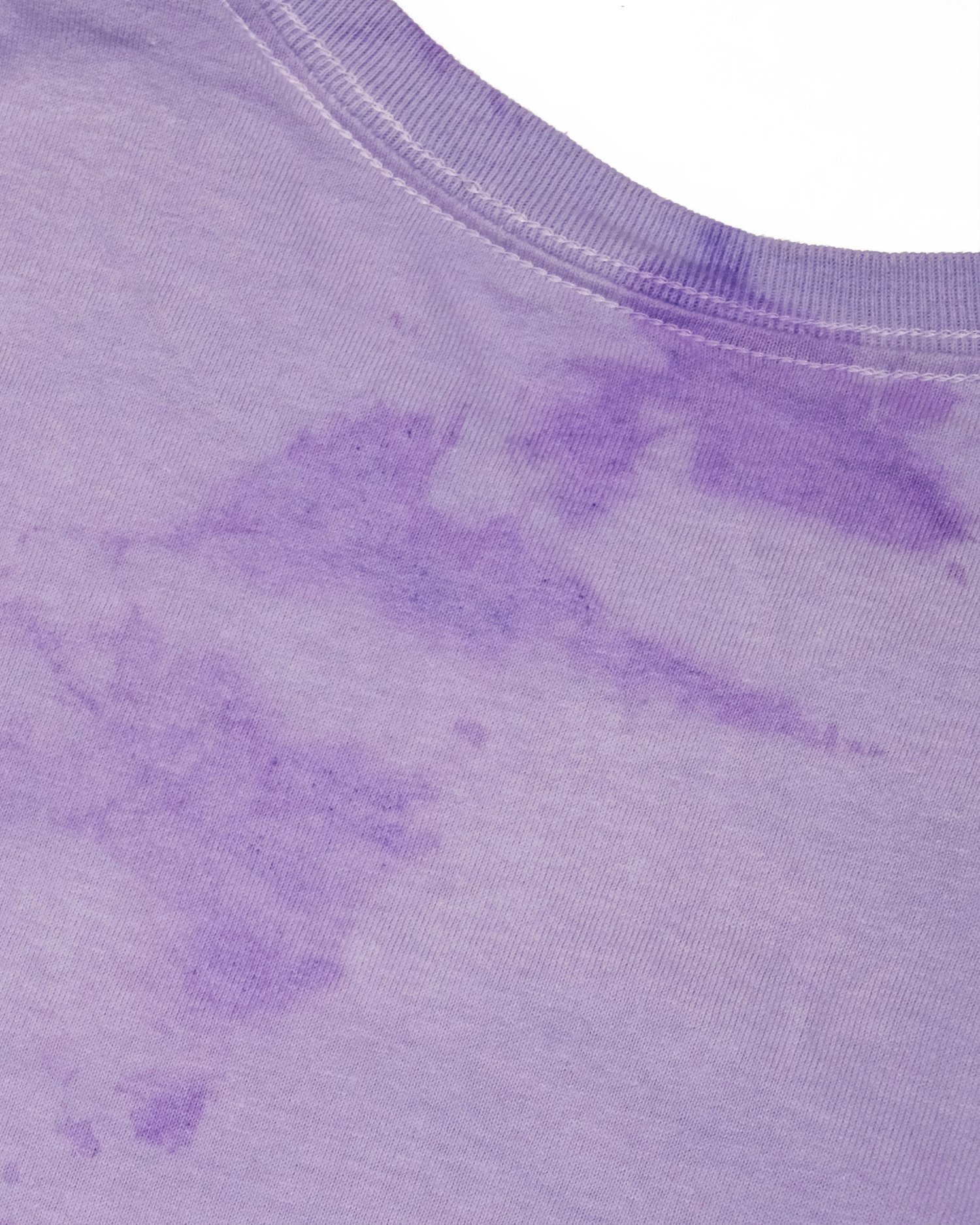 Alle T-Shirts wurden in der Waschmaschine lila überfärbt/gebatikt, somit sieht jedes T-Shirt anders aus. Die letzten zwei Bilder dienen als Beispiel.